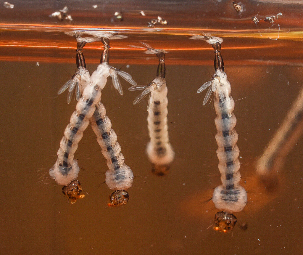 What you’re seeing here are mosquito larvae — growing in standing water and getting ready to become biting adults.